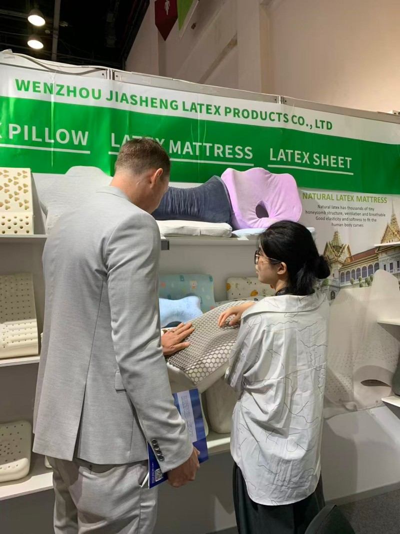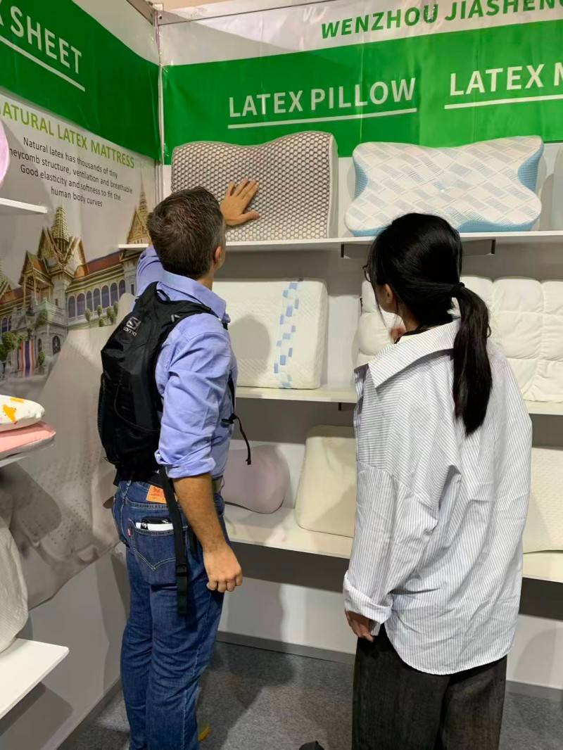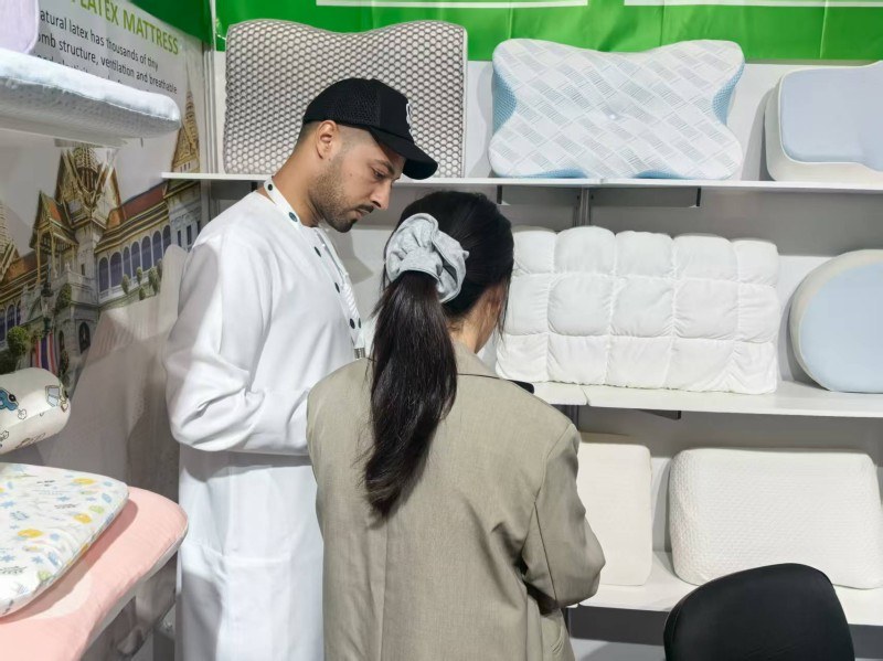 यस दुबई निद्रा प्रदर्शनीमा, हामी विश्वभरका आगन्तुकहरूलाई हाम्रो निद्रा-केन्द्रित तकियाहरू देखाउन सम्मानित छौं। हामी बजारमा सबैभन्दा धेरै बिक्री हुने दुईवटा तकियाहरू प्रस्तुत गर्न समर्पित छौं:प्राकृतिक लेटेक्स तकियार आधुनिक स्मार्ट सामग्रीमेमोरी फोम तकिया। लेटेक्सको द्रुत रिबाउन्ड र एन्टि-एलर्जी गुणहरू लेटेक्स उत्साहीहरूले अत्यधिक मन पराउँछन्। यसैबीच, मेमोरी फोमको अन्तिम फिटले गहिरो निद्रा प्रदान गर्न सक्छ। साइटमा रहेका ग्राहकहरूसँगको हाम्रो गहिरो सञ्चारले हामीलाई तिनीहरूको तकिया खोजेको महसुस गराएको छ। हामी दृढतापूर्वक विश्वास गर्छौं कि विभिन्न निद्रा बानीहरूको लागि व्यक्तिगत विकल्पहरू प्रदान गर्नु गुणस्तरीय निद्राको कुञ्जी हो।